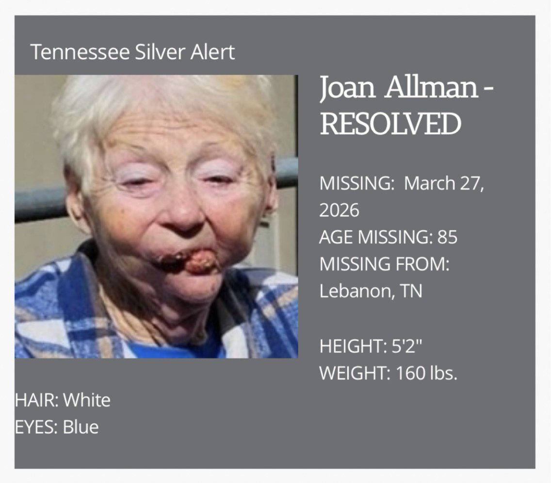 Mrs. Allman’s family was notified, along with the Lebanon Police Department in Tennessee.