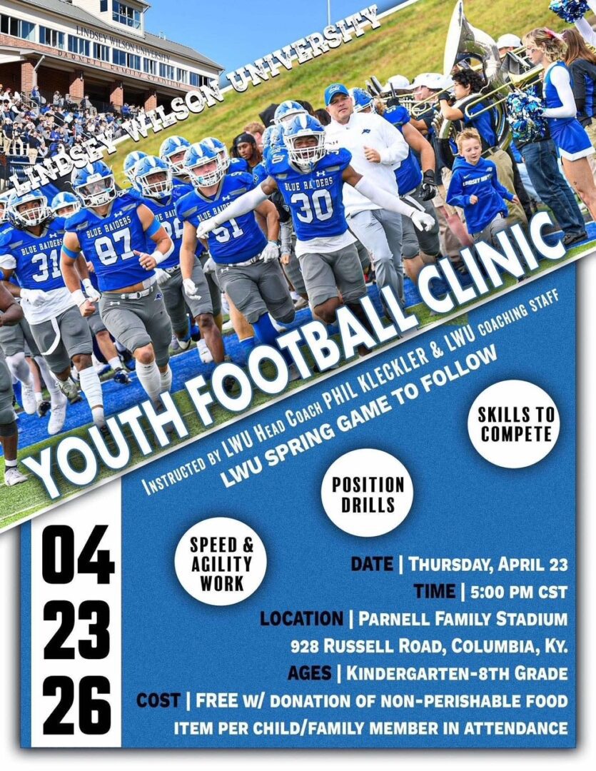 Lindsey Wilson University Youth Football Clinic Thursday, April 23rd At The Parn