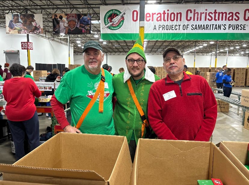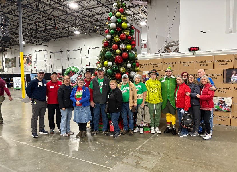 This group of volunteers recently traveled to the Samaritans purse Operation Christmas Child processing center in Atlanta, Georgia. The group has been busy this week processing OCC shoebox gifts. These boxes will be traveling to other countries, to bless children over the world over the next few weeks. Pictured from left are OCC Ky Director Clint Fields, Mark Fudge, Denise Fudge, Tricia Malpica, Eric Malpica, Justin Burris, Pam Burris, Gail Watkins, Linda Watkins, Evan LaBarge, Aaron LaBarge, Patsy Wilson, Kerry Radford, Terrie Radford, Jackie Phelps, and Kathy Phelps. The group is made up primarily of individuals from the Columbia Baptist Church, but also has volunteers from other churches in the area as well. The Atlanta processing center has already processed more than 1 million shoebox gifts and hopes to reach 2 million shoeboxes by the end of next week. Nationwide at the eight processing centers across the United States, Samaritans Purse hopes to process over 12 million shoebox gifts over the next few days. An amazing statistic about the shoebox gifts in 2024 is that 27% of the recipients of shoebox gifts, led to the gift of salvation for the children receiving their boxes. Not only do the children receive the wonderful gifts in each shoebox, but they also receive gospel materials written in their own language, which consists of a 12 week study of the gospel. Columbia Baptist Church has had a group travel to the Atlanta processing center almost every year since 2016.