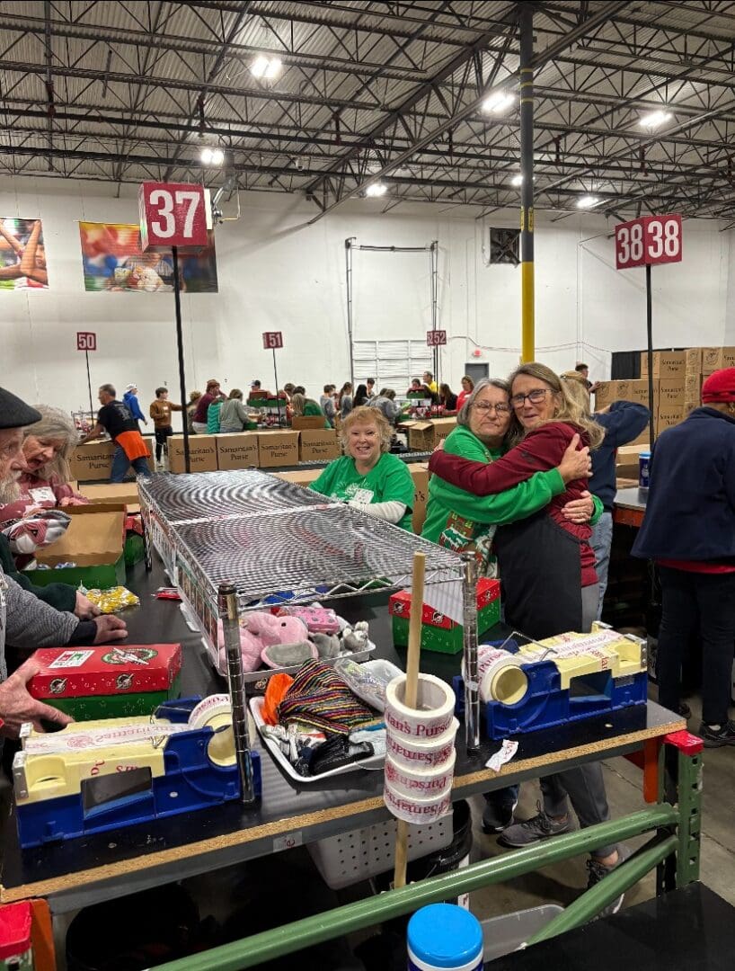 Gail and Linda Watkins traveled to the processing center for the second straight year. Their role was to remove items from the boxes that did not belong and make sure each box had the property TLC before moving on to the next person.