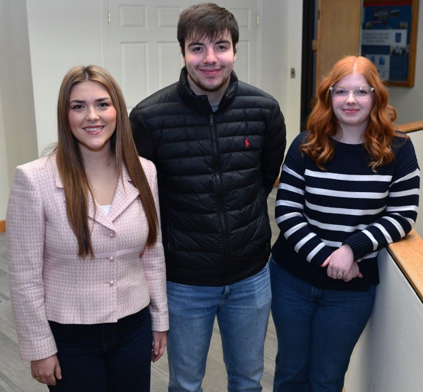 Lindsey Wilson University business administration seniors, from left, Taylor Harvey of Columbia, Lucas Pooler of Columbia and Abby Girdler of Somerset, Kentucky, placed second in a national business project sponsored by CapSource’s Live Case Competition.