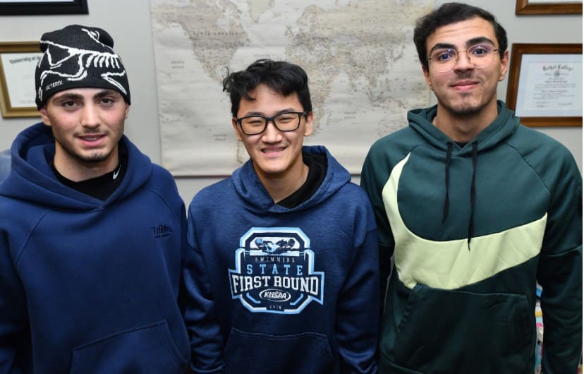 Lindsey Wilson University business administration majors, from left, Adriano Uriz ’27 of Barcelona, Spain, William Rowe ’28 of Columbia and Akram Nejjar ’27 of Rabat, Morocco, placed third in a national business project sponsored by CapSource’s Live Case Competition.
